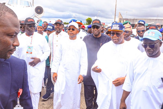 After successfully leading the youth rally in Igarra, headquarters of Akoko-Edo on Friday, Governor Ahmed Usman Ododo proceeded to Benin City, the Edo state capital where he was seen receiving other governors and party leaders ahead of the APC mega rally held at the University of Benin Sports Complex in Ugbowo.